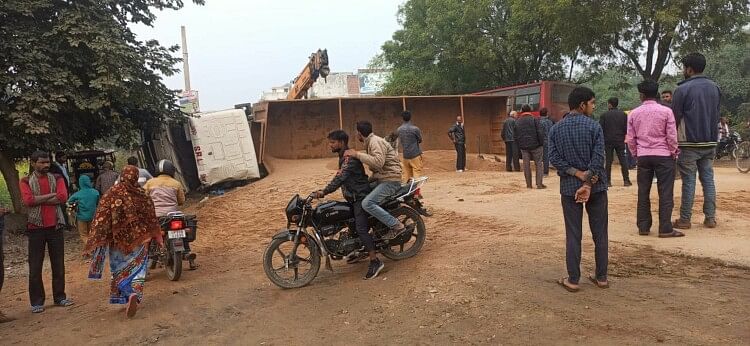 बुधवार की भोर साढ़े चार बजे रायबरेली की ओर से मौरंग लादकर जायस की तरफ जा रहा ट्राॅला बहादुरपुर चौराहे के पास जानकी ट्रेडर्स के पास बेकाबू होकर बीच हाईवे पर पलट गया। ट्राॅला पलटते ही हाईवे के दोनों ओर वाहनों की कतार लगनी शुरू हो गई। देखते ही देखते जाम लग गया। ट्रॉला लदी मौरंग चारों तरफ दूर-दूर तक फैल गई। आवागमन बाधित हो गया। हर कोई अपने वाहन को सड़क के किनारे से निकालने की जद्दोजहद में लग गया। घंटों मशक्कत के बाद मजदूर लगाकर ट्रैक्टर ट्रॉली से बिखरी मौरंग को सड़क से हटवाया गया। जिससे दो पहिया वाहन को आने जाने में सुगमता मिली।