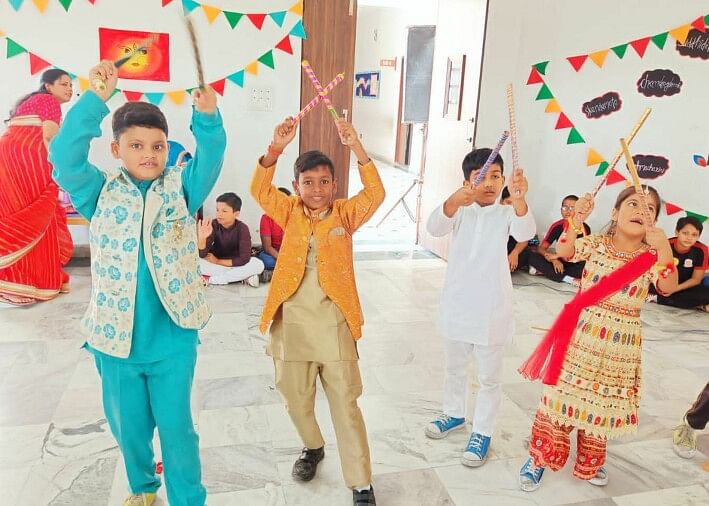 डांडिया करते बच्चे