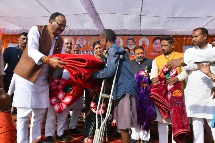 जरूरतमंद को कंबल देते उपमुख्यमंत्री