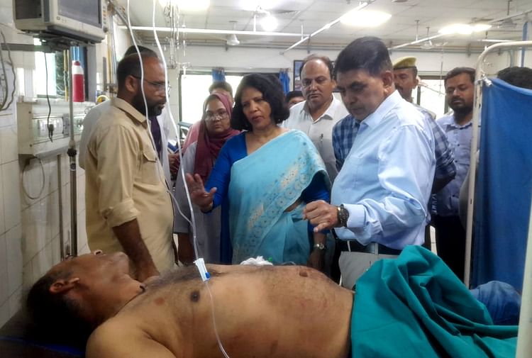 गोली लगने से घायल एएमयू कर्मचारियों को जेएन मेडिकल में देखने पहुंचीं एएमयू वीसी