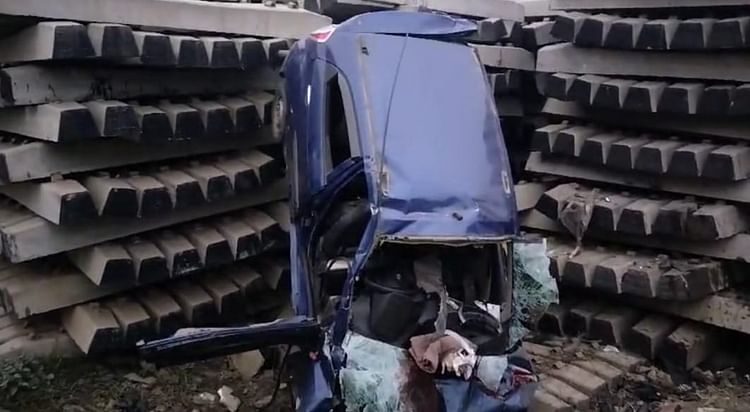 हादसे में दुर्घटनाग्रस्त हुई कार। – फोटो : amar ujala
