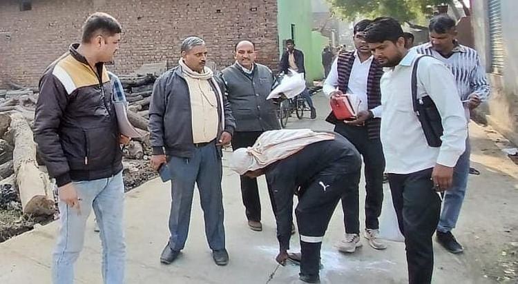 मथुरा। सौंख में गढ़वाल टीले की चारों दिशाओं की पैमाइश करती पुरातत्व और राजस्व विभाग की टीम। – फोटो : mathura