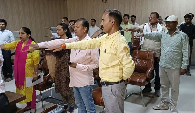 शपथ लेते स्वास्थ्य कर्मी