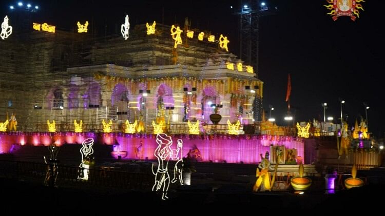 राममंदिर को दीपों और लाइटों से सजाया गया था।