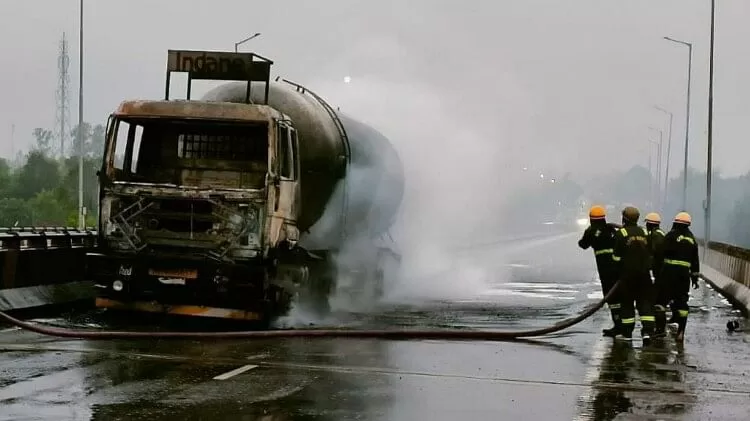 टैंकर के इंजन में अचानक आग लग गई जिसकी भनक ड्राइवर को लगते ही उसने टैंकर को ओवरब्रिज पर रोककर आग बुझाने का प्रयास किया लेकिन पानी के अभाव में आग नहीं बुझ सकी और लपटें तेज हो गई। ड्राइवर ने मामले की सूचना पुलिस व फायर कंट्रोल रूम को दी।