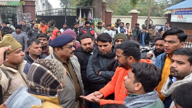 अयोध्या में रामलला के प्राण प्रतिष्ठा से जुड़े होर्डिंग फाड़े जाने की घटना ने 8 जनवरी को सेंटर प्वाइंट पर बखेड़ा खड़ा करा दिया। यहां एकत्रित हुए युवा भाजपाई ने हंगामा करते हुए जाम लगाकर प्रदर्शन किया। ठेकेदार के खिलाफ मुकदमा-गिरफ्तारी की आवाज बुलंद कर दी। पुलिस ने ठेकेदार व उसके कर्मचारी के खिलाफ मुकदमा दर्ज किया है।