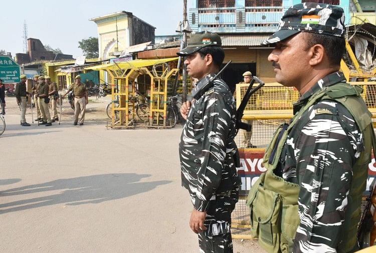 अयोध्या-टेढ़ी बाजार थाना रामजन्मभूमि जाने वाले मार्ग पर तैनात सुरक्षा में तैनात जवान