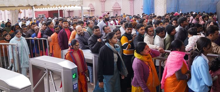 वहीं प्रयागराज से अयोध्या आ रहे श्रद्धालुओं की भीड़ राम मंदिर में उमड़ रही है। पिछले तीन दिनों में राम मंदिर में पांच लाख से अधिक श्रद्धालु दर्शन-पूजन कर चुके हैं। शुक्रवार को भी आस्थावानों की कतार लगी रही। जन्मभूमि पथ पर लगे सुरक्षाकर्मी श्रद्धालुओं को सुगम दर्शन कराने के प्रयास में पूरे दिन जुटे रहे। राम मंदिर में सुबह 6:30 बजे खुला तो रात 9:15 बजे तक 14 घंटे से अधिक समय तक खुला ही रहा। दोपहर भोग आरती के दौरान केवल 20 मिनट के लिए मंदिर का पट बंद किया गया लेकिन दर्शन नहीं रोका गया। जिन श्रद्धालुओं को व्हीलचेयर चाहिए था उन्हें घंटों इंतजार करना पड़ा, तब जाकर उन्हें व्हीलचेयर मिल सका।