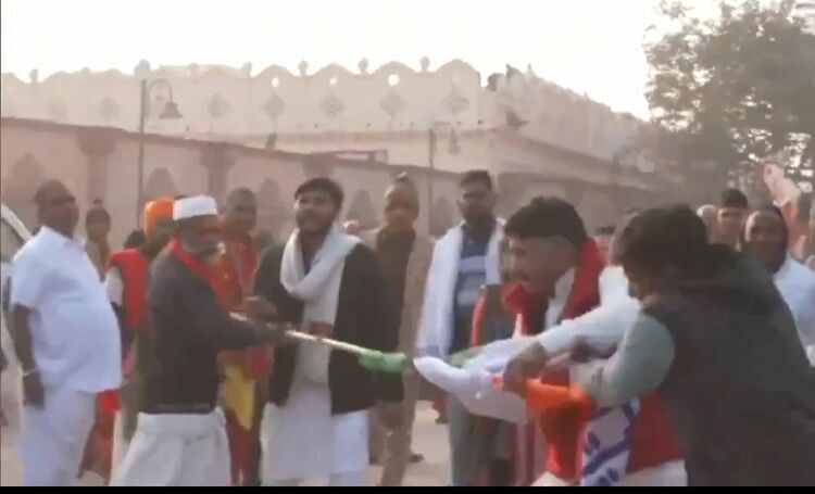 अयोध्या राम मंदिर के बाहर कांग्रेसियों और दूसरे संगठनों से जुड़े लोगों के बीच झड़प हो गई। ऐसी खबरें आ रही हैं कि झंडा और होर्डिंग लगाने को लेकर यह झड़प हुई। हालांकि मामला ज्यादा आगे नहीं बढ़ सका। सुरक्षा में लगे जवानों ने दोनों पक्षों को तितर-बितर कर दिया।