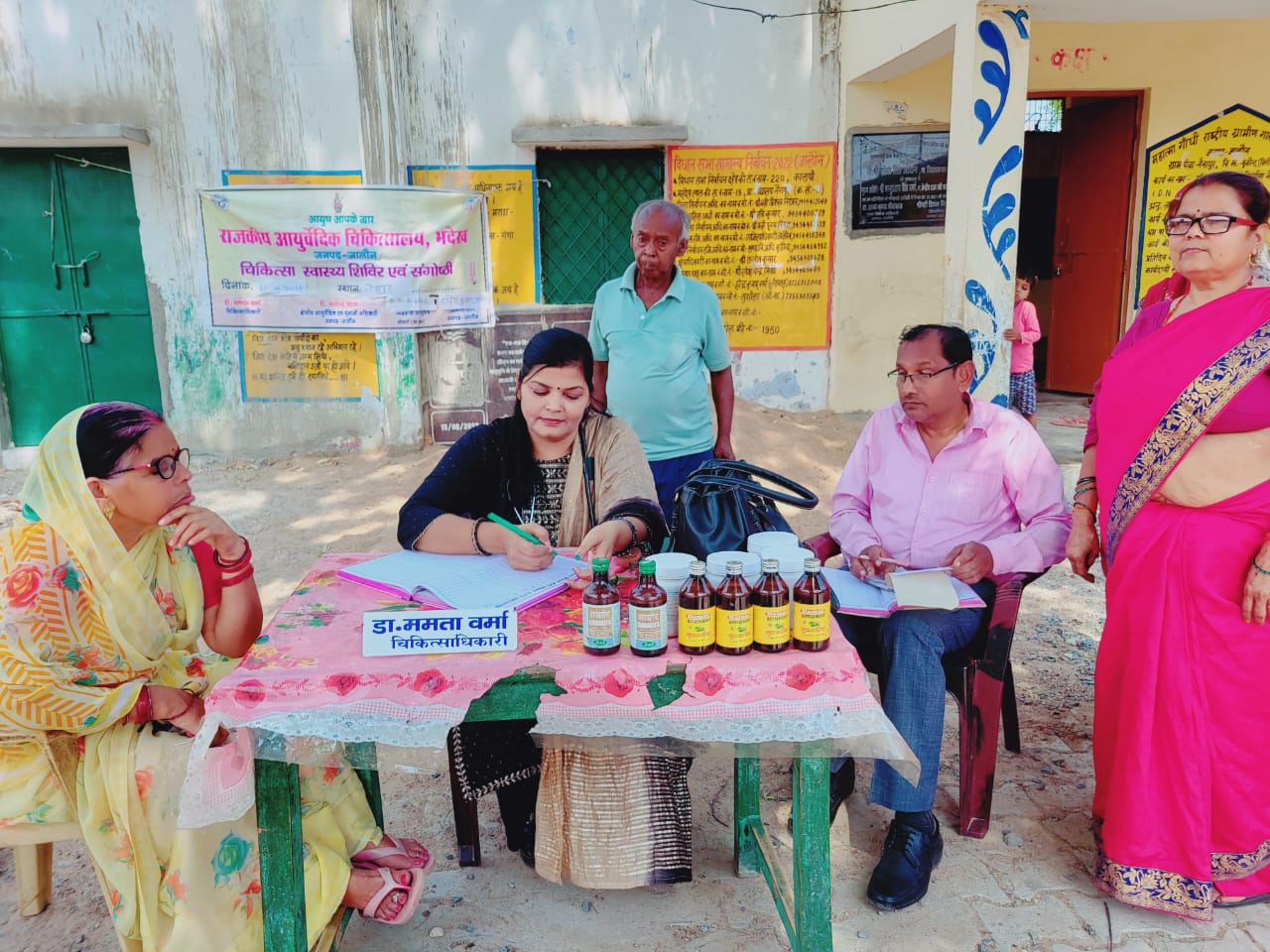 (उरई जालौन) जालौन: आयुर्वेद एवं जालौन जिलाधिकारी राजेश कुमार पाण्डेयजी एवं डॉ.सत्येंद्र पटेल DAUO जालौन के मार्गदर्शन मे आज दिन बुधवार को आयुष आपके द्वार के अंतर्गत राजकीय आयुर्वेदिक चिकित्सालय भदेख द्वारा प्राथमिक विधालय नैनापुर मे शिविर का आयोजन किया गया शिविर में चिकित्साधिकारी डॉ. ममता वर्मा द्वारा 205 रोगियों का स्वास्थ्य परीक्षण किया गया व रवीन्द्र कुमार फार्मासिस्ट बावली ने 7 दिन की निःशुल्क औषधि वितरण की गयी शिविर में उदारोग ,ज्वर, कास, ,वात व त्वचा रोगों की अधिकता रही ।शिविर में सहयोग किया चतुर्थ श्रेणी कर्मचारी मुन्नीलाल व विधालय के समस्त स्टाफ़ और ग्रामवासियों ने सहयोग किया।डॉ ममता वर्मा चिकित्साधिकारी भदेख द्वारा भदेख के आस पास के ग्रामों ने कहा की चिकित्सा का लाभ मिल रहा है उनके द्वारा शिविर के आयोजन होते रहते है जनमानस आयुर्वेद चिकित्सा के प्रति जागरूक हो रहे हैं।