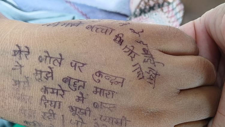 हाथ पर लिखा सुसाइड नोट।