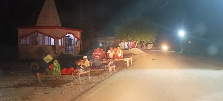 रात में जागकर पहरा देते लोग।