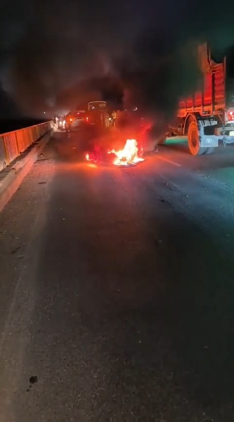फोटो – 04 शेरगढ़ पुल पर लगी भीषण आग। संवाद