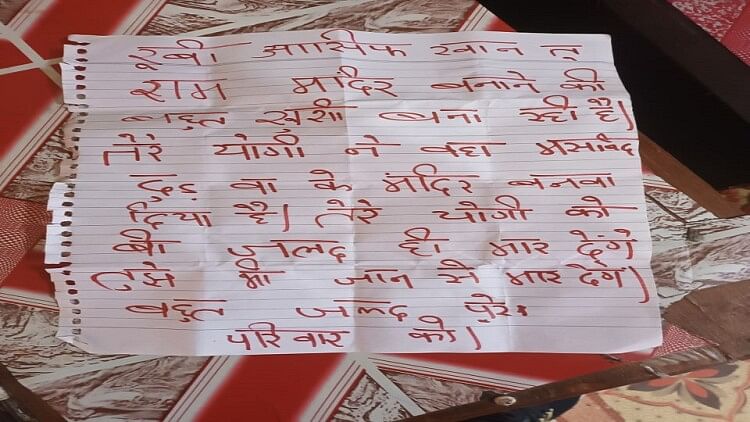 उन्होंने कागज उठाकर देखा तो उस पर लाल रंग में खून जैसे तरल पदार्थ से धमकी लिखी थी। पत्र में लिखा है कि रूबी आसिफ खान तू राम मंदिर बनने की बहुत खुशी मना रही है। तुझे भी मार देंगे और बहुत जल्द तेरे परिवार को भी। साथ ही मुख्यमंत्री को भी धमकी दी गई। इस सूचना पर इलाका पुलिस के साथ-साथ सीओ प्रथम भी मौके पर पहुंच गए।
