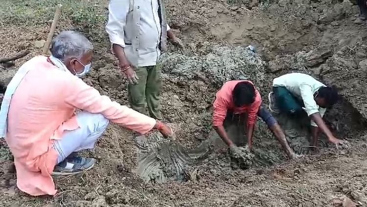 कब्र खोदकर शव निकालते ग्रामीण