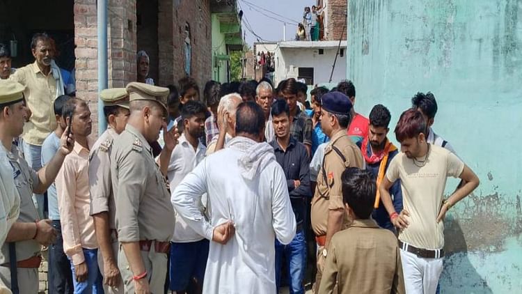 मौके पर पहुंची पुलिस व एकत्र गांव के लोग