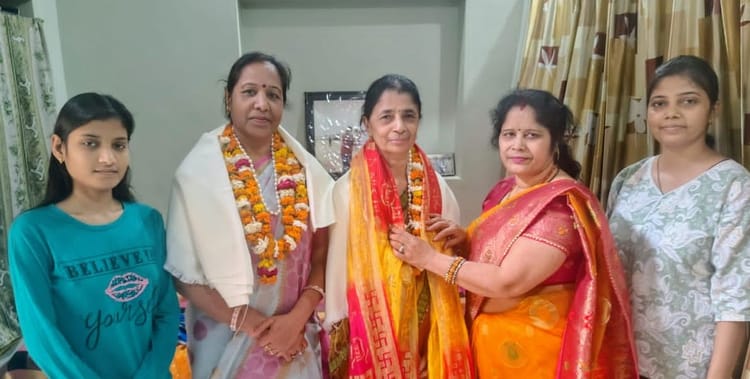 फोटो37नामित महिला सभासद उमा चौहान व विजय लक्ष्मी कश्यप का स्वागत करतीं महिलाएं। स्रोत: स्वयं