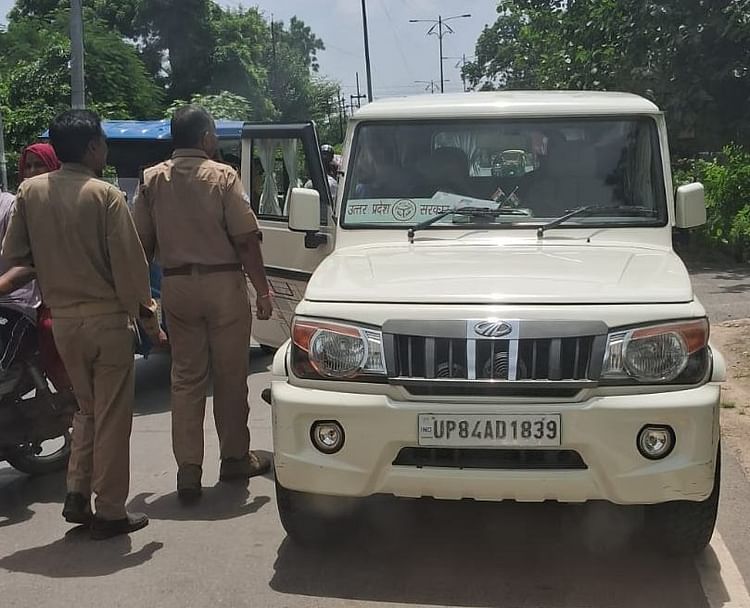 चेकिंग के दौरान एआरटीओ द्वारा रोकी गई अधिशासी अभियंता लोनिभि निर्माण खंड के लिए अनुबंधित निजी क