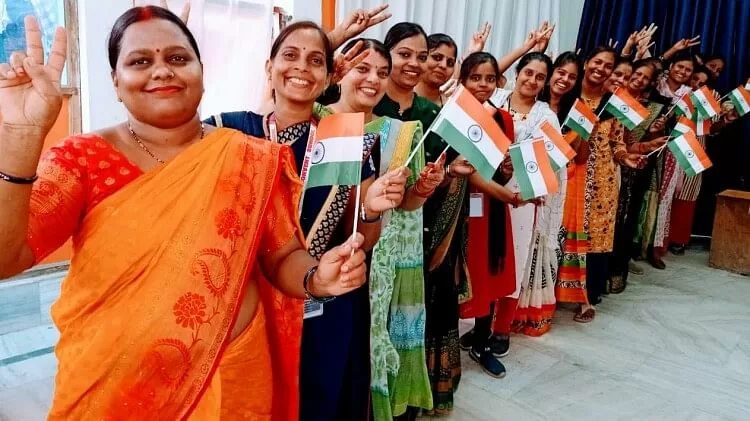 चंद्रयान की सफल लैंडिंग पर जश्न मनाती महिलाएं