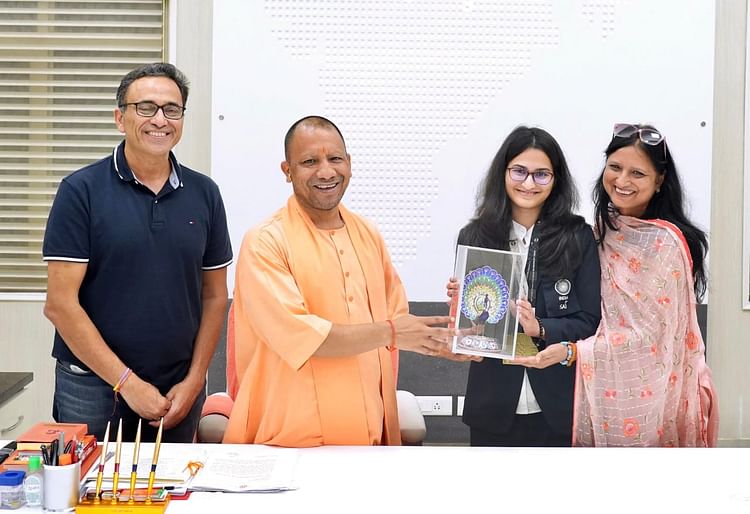 सीएम योगी के साथ वंतिका अग्रवाल व उनके परिजन।