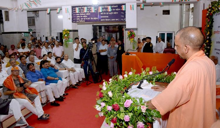 डायलिसिस विंग के उद्घाटन समारोह में संबोधित करते सीएम योगी आदित्यनाथ।