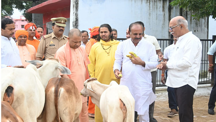सोमवार रात में गोरखपुर आए मुख्यमंत्री एवं गोरक्षपीठाधीश्वर योगी आदित्यनाथ ने गोरखनाथ मंदिर में श्रीकृष्ण जन्मोत्सव मनाने के बाद मंगलवार सुबह मंदिर की गोशाला में गोसेवा की। उन्होंने गोशाला का भ्रमण कर गोवंश का हाल जाना और उन्हें खूब दुलारकर अपने हाथों से गुड़ और केला खिलाया।