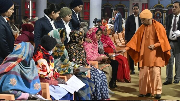 गोरखनाथ मंदिर में जनता दर्शन के दौरान समस्याएं सुनते सीएम योगी