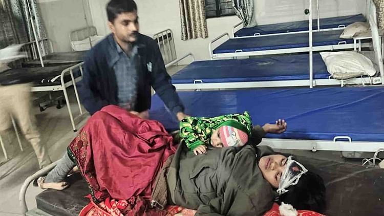 सफीपुर सीएचसी में भर्ती घायल ममता व उसका दो साल का मासूम बेटा आर्यन