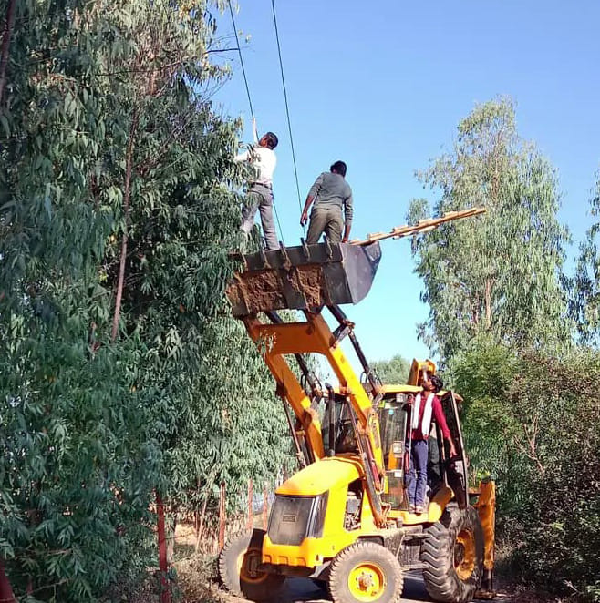 जेसीबी से दुरुस्त की गई आंधी में क्षतिग्रस्त बिजली की लाइन