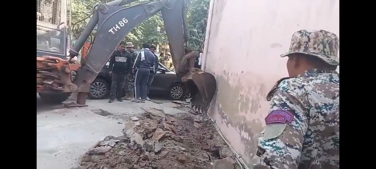 जेसीबी से अतिक्रमण को ध्वस्त करते निगम कर्मी। स्त्रोत वीडियो ग्रैब