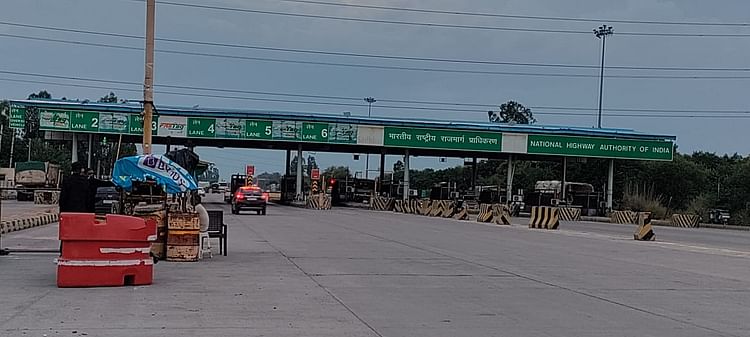 टोल प्लाजा से गुजरते वाहन।