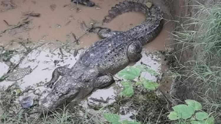 आगरा में लगातार हो रही बारिश के बीच तालाब से एक मगरमच्छ निकला और गांव में पहुंच गया। ग्रामीणों ने इसे देखा तो उनमें खलबली मच गई। सूचना पर पहुंची वन विभाग की टीम ने रेस्क्यू कर मगरमच्छ को तालाब में वापस छोड़ा। इसके बाद ग्रामीणों ने राहत की सांस ली।