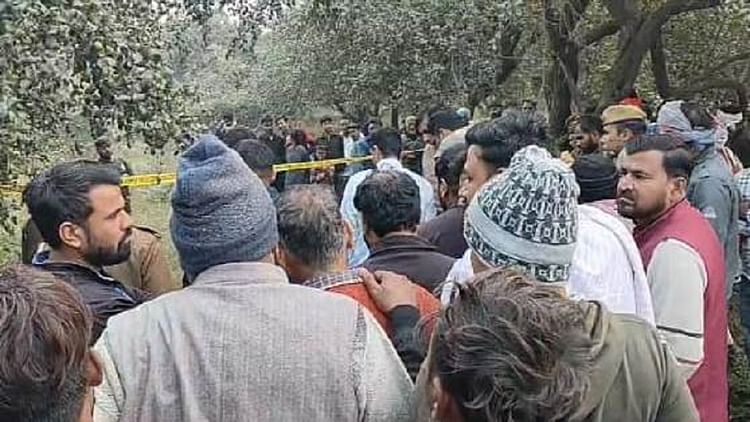 बाग में शव मिलने पर देखते ग्रामीण – फोटो : संवाद