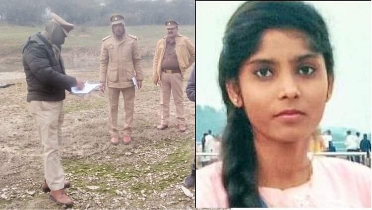 छात्रा भारती की फाइल फोटो और घटनास्थल पर जांच करती पुलिस