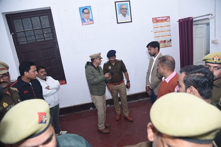 कांग्रेस कार्यालय पहुंची पुलिस। – फोटो : अमर उजाला।