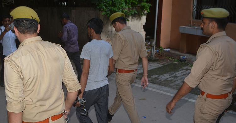 आरोपी को ले हुई पुलिस