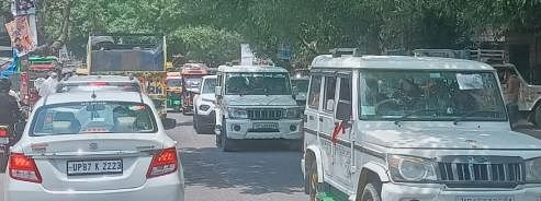 सोरोंजी में बुद्ध पूर्णिमा पर गंगा स्नान को लेकर कासगंज-बदायूं मार्ग पर जाम में फंसे वाहन ।