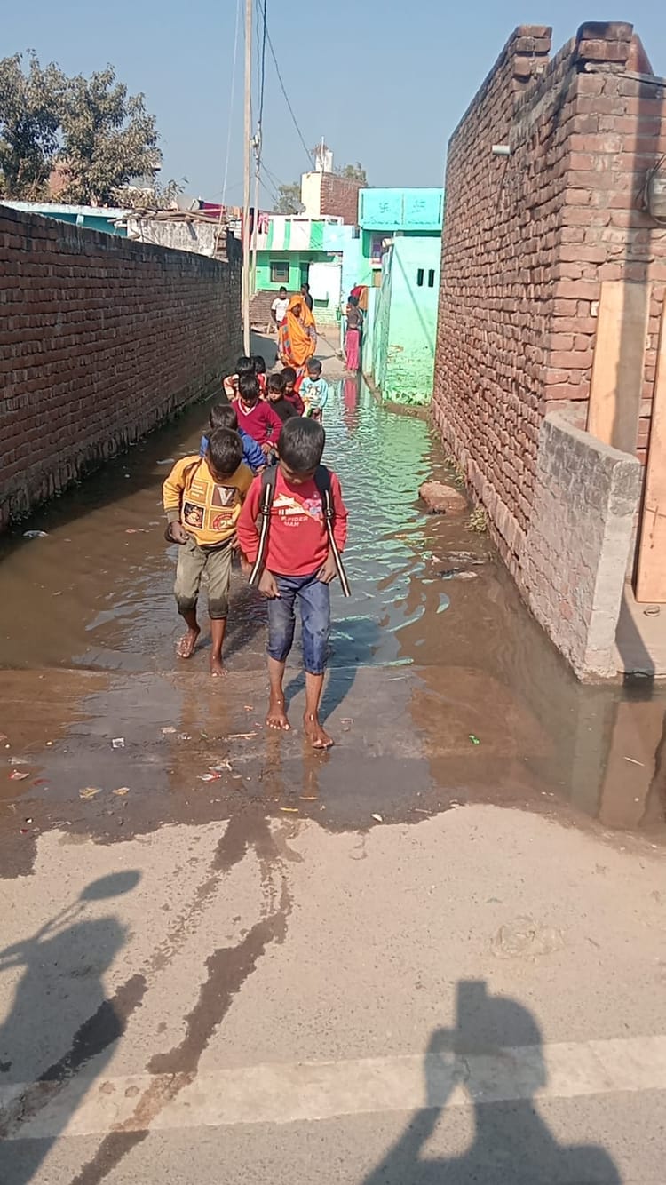 पानी में होकर स्कूल जाने को मजबूर ननिहाल