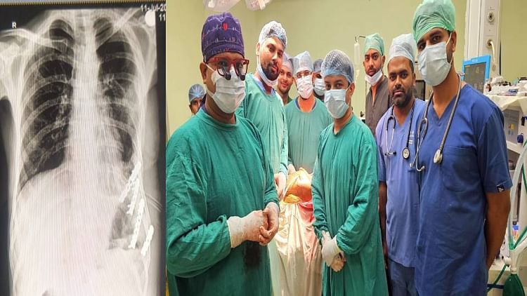 उत्तर प्रदेश के आगरा में एसएन मेडिकल कॉलेज के चिकित्सकों ने इस बार जटिल ऑपरेशन कर जूता कारीगर की जान बचाई। छत से ईंटों के ढेर पर छाती के बल गिरने के कारण बायीं ओर की सभी पसलियां टूट गई थीं। फेफड़े से रक्तस्राव हो रहा था। मरीज की जान खतरे में थी। एसएन के (कार्डियो थोरेसिक वैस्कुलर सर्जरी) सीटीवीएस विभाग के डॉ. सुशील सिंघल ने चिकित्सकों की टीम के साथ ऑपरेशन कर मरीज को बचा लिया।