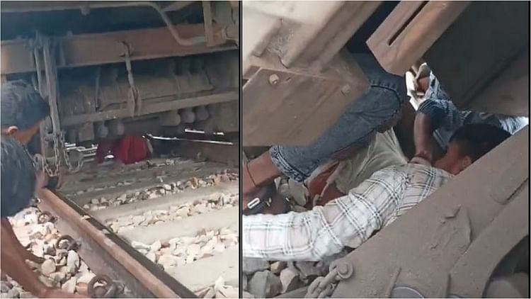 ट्रेन की नीचे फंसा युवक