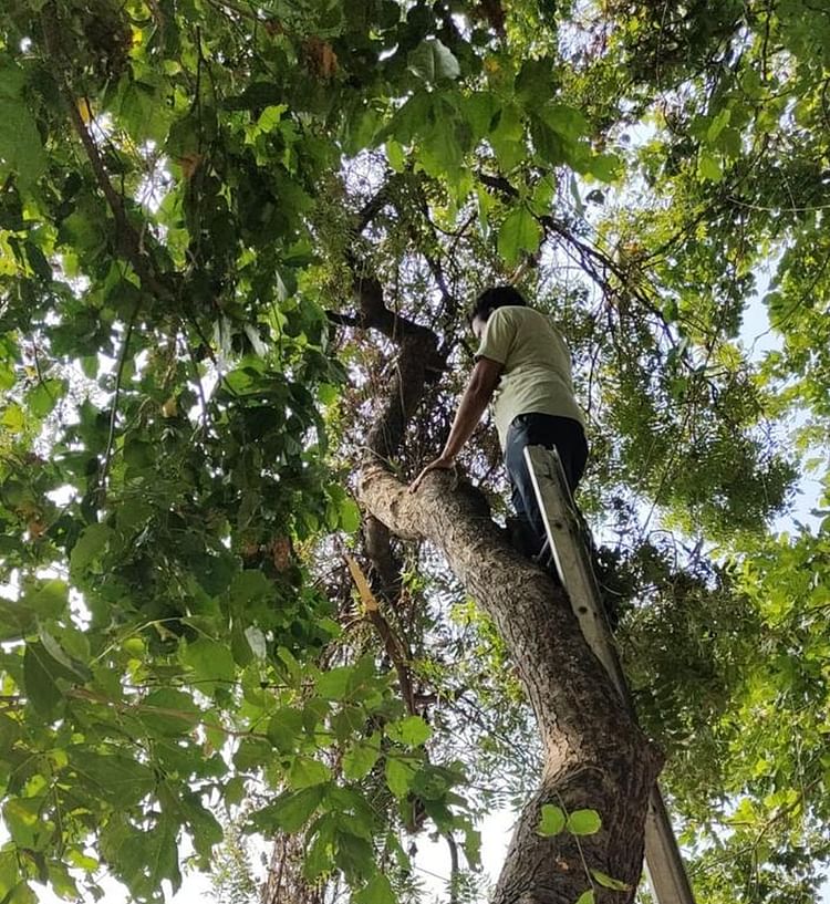 जायस में बिजली लाइन दुरुस्त करता कर्मचारी।