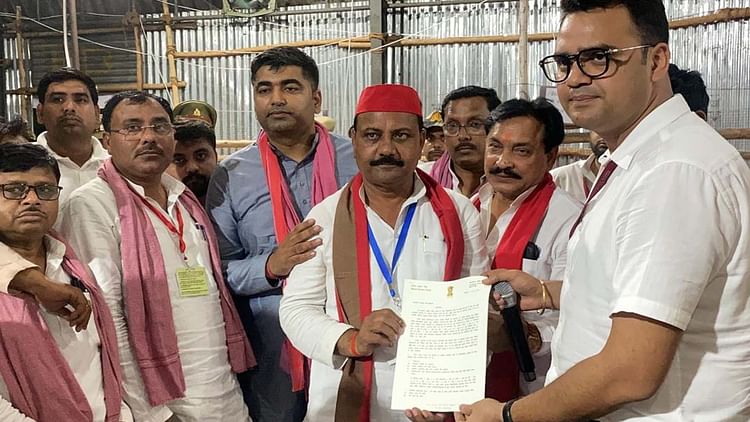 सपा प्रत्याशी को जीत का प्रमाण पत्र देते जिला निर्वाचन अधिकारी अवनीश राय