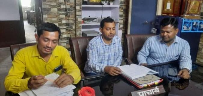 डायट में खंड शिक्षा अधिकारी रवि प्रकाश, प्रवक्ता आरेंद्र सिंह चौहान व अभय गोस्वामी से बातचीत कर – फोटो : डायट में खंड शिक्षा अधिकारी रवि प्रकाश, प्रवक्ता आरेंद्र सिंह चौहान व अभय गोस्वामी से बातचीत करते हुए।