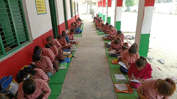 परिषदीय विद्यालयों में आयोजित अर्द्ध वार्षिक परीक्षा में प्रतिभाग करते छात्र छात्राएं।