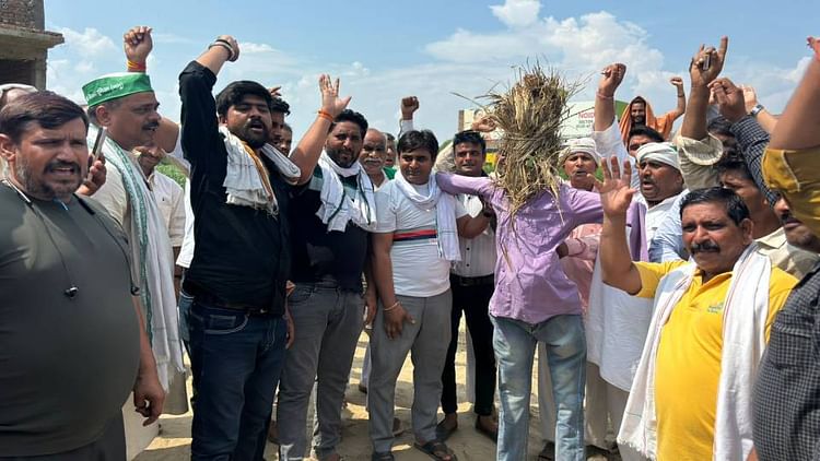 किसानों ने एक्सप्रेसवे प्राधिकरण के ओएसडी का पुतला फूंका