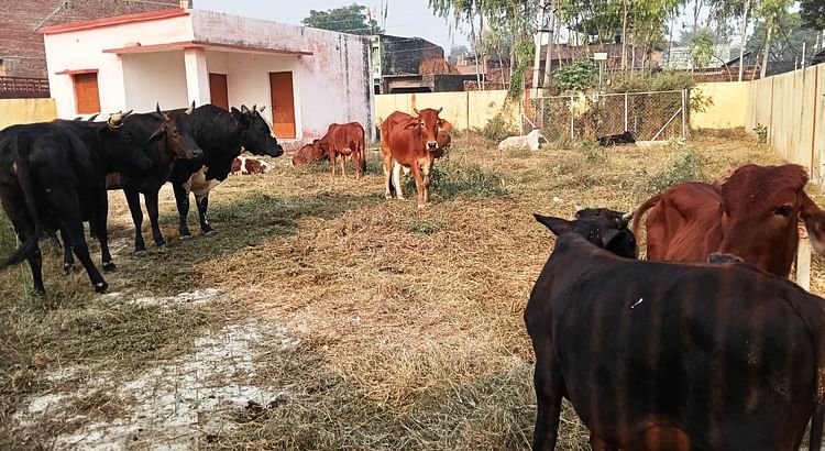 सहावर में बारात घर में ग्रामीणों ने बंद किए निराश्रित गोवंश।