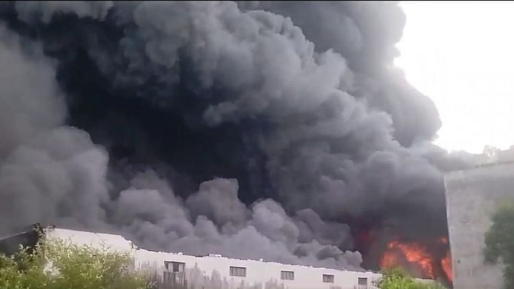 गोदाम में लगी भीषण आग।
