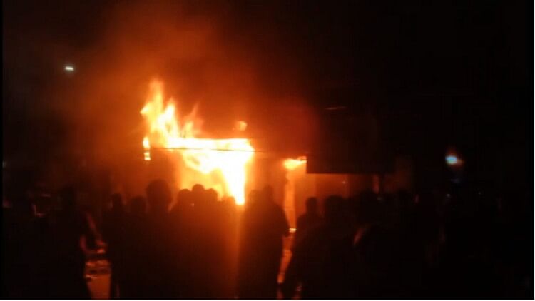प्रयागराज की बरांडा मार्केट में लगी आग