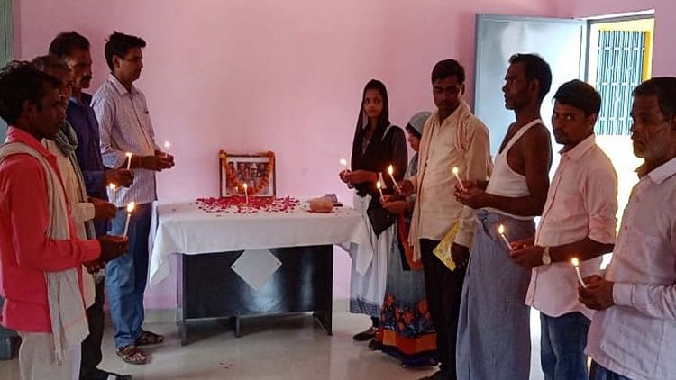 बिकरू गांव में शहीद पुलिसकर्मियों को श्रद्धांजलि देते ग्रामीण