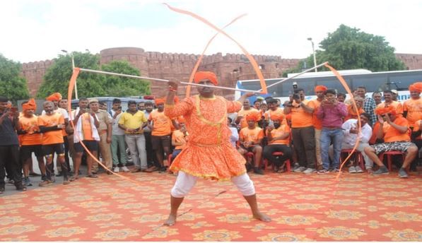 यात्रा संयोजक मारुति आभा गोले ने बताया कि मराठी कलाकारों ने तलवार और लाठी से युद्धकला का प्रदर्शन किया। नाटक के माध्यम से शिवाजी की गरुड़ उड़ान प्रस्तुत की। इस यात्रा में 78 वर्षीय बुजुर्ग महिला ने करीब 1253 किमी. साइकिल चलाने का संकल्प लिया है।